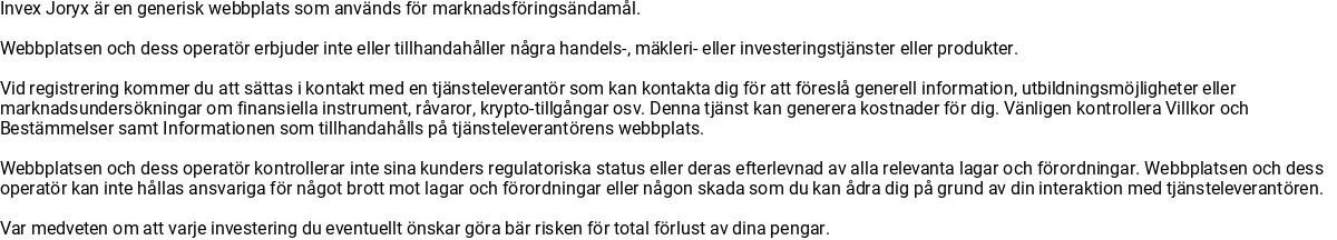 Invex Joryx syftar till att säkerställa att alla medlemmar har en fullständig förståelse för de risker som är förknippade med handel. Varje investering kan leda antingen till en vinst eller en förlust. Marknadens volatilitet spelar en nyckelroll i prisfluktuationerna av aktier, tillgångar och andra investeringar.